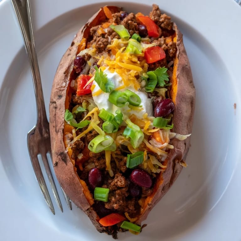 Save A hearty comforting dish featuring tender baked sweet potatoes filled with zesty flavorful chili. Perfect for a wholesome weeknight meal or casual entertaining.