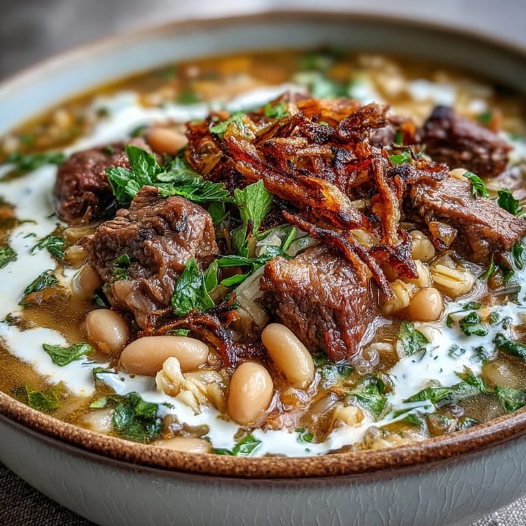 This soup rewards patience in ways that feel almost philosophical. The initial browning and toasting takes only minutes but matters enormously. The long simmer—1 hour 30 minutes—isn't wasted time; it's when the barley softens, the lentils break down slightly into the broth, and the beef becomes so tender it nearly dissolves. The beans gradually release their subtle creaminess. Rushing any of these steps results in something that tastes hurried. Good soup asks you to plan ahead, to start early, to let time do what you cannot.