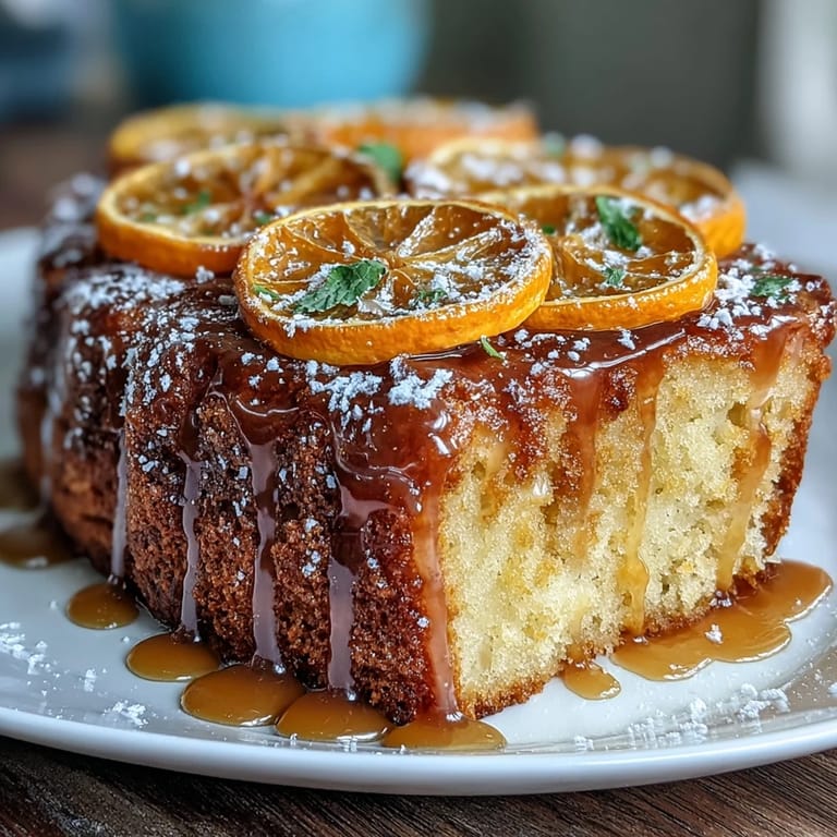 Save I discovered this cake on a gray afternoon when my neighbor appeared at the door with a jar of candied oranges she'd made weeks prior, wondering if I could turn them into something worthwhile. The kitchen smelled like sugar and citrus as I worked, and by the time that golden cake emerged from the oven, we were both convinced we'd stumbled onto something special. There's something about olive oil cakes that feels both humble and elegant at once, and when you add those jewel-toned candied oranges, it transforms into the kind of dessert that makes people pause mid-conversation.