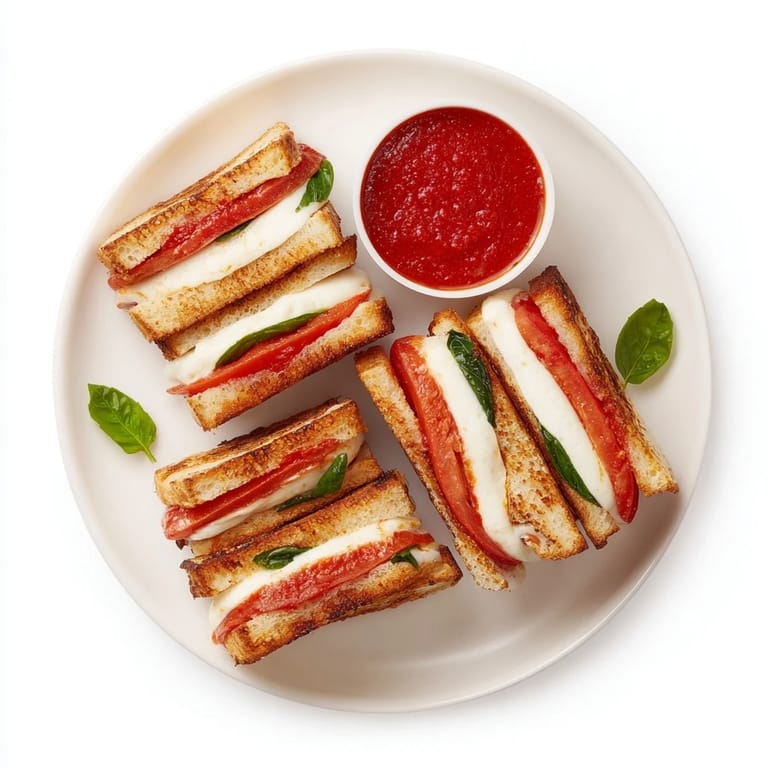 Cook the sandwiches just before serving and slice while still warm for maximum melted cheese pull. Arrange strips on a platter with marinara in a center bowl for dipping. Garnish with fresh basil for an elegant presentation.