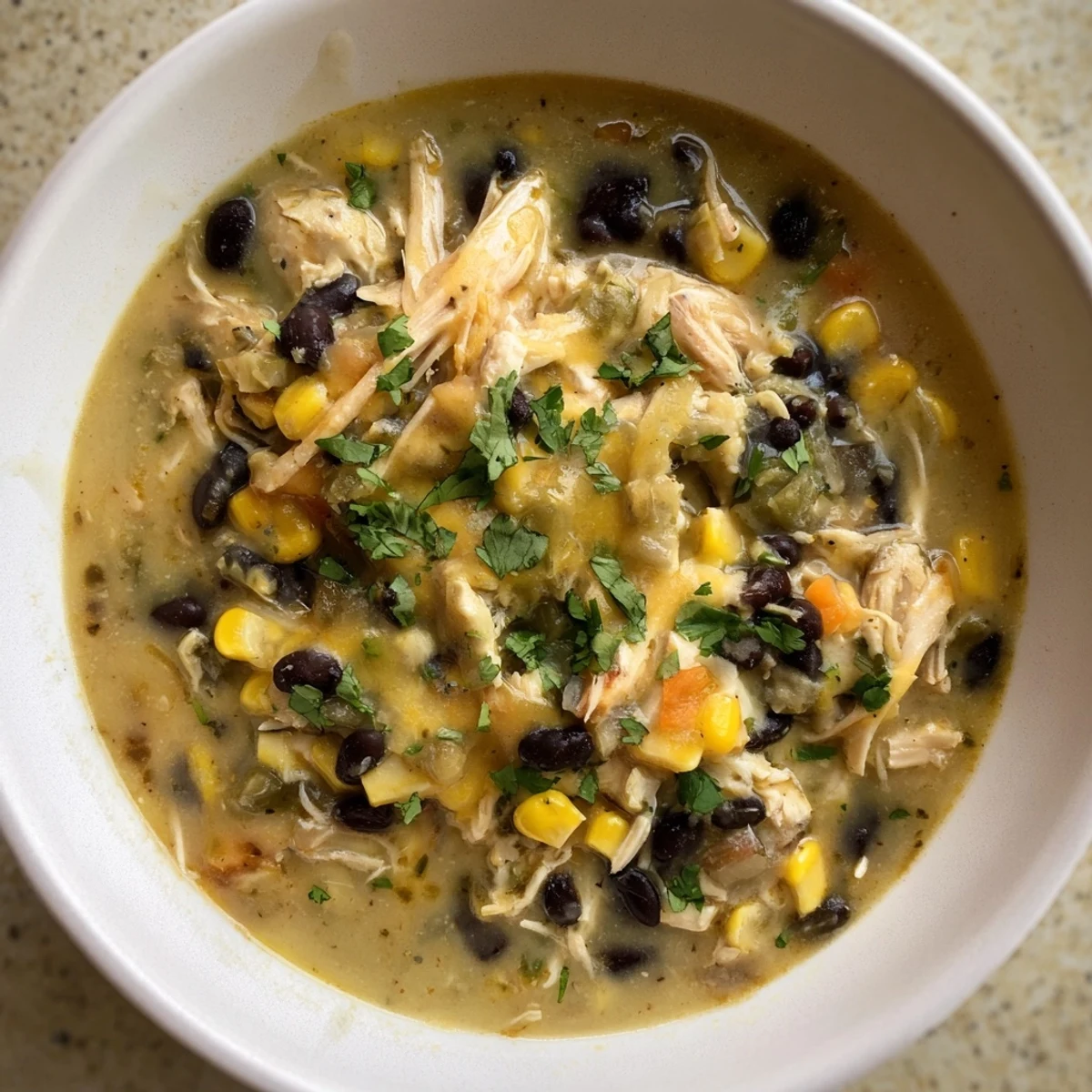 Save A creamy and comforting soup featuring shredded chicken, smoky poblano peppers, black beans, sweet corn, and a touch of lime—perfect for cozy dinners and quick weeknight meals.