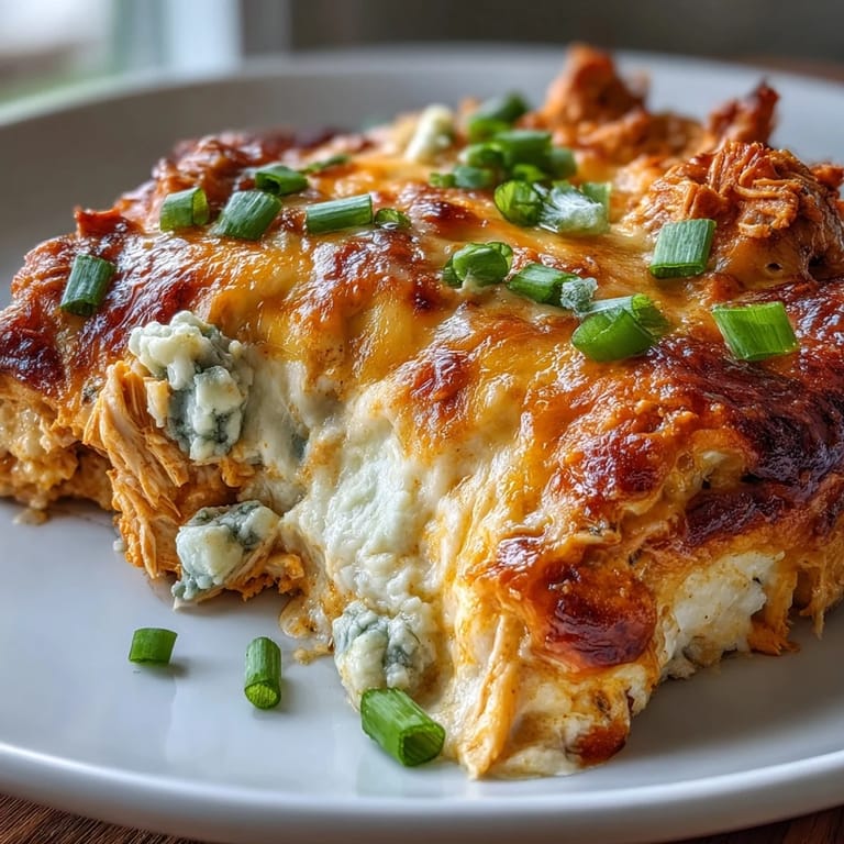 Serve this buffalo chicken dip hot from the oven with an array of dippers to suit every preference. Classic choices include crispy celery and carrot sticks, which provide refreshing crunch and honor the traditional buffalo wing accompaniments. Tortilla chips offer satisfying crunch and are perfect for scooping generous portions, while crackers—especially sturdy varieties like water crackers or wheat thins—provide a more refined option. For a low-carb approach, serve with bell pepper strips, cucumber rounds, or pork rinds. Toasted baguette slices or pita chips work beautifully for heartier appetites. Keep the dip warm throughout your gathering by using a small slow cooker set to warm, or return it to a low oven between servings. Garnish with fresh green onions and crumbled blue cheese just before serving for visual appeal and an extra flavor boost.