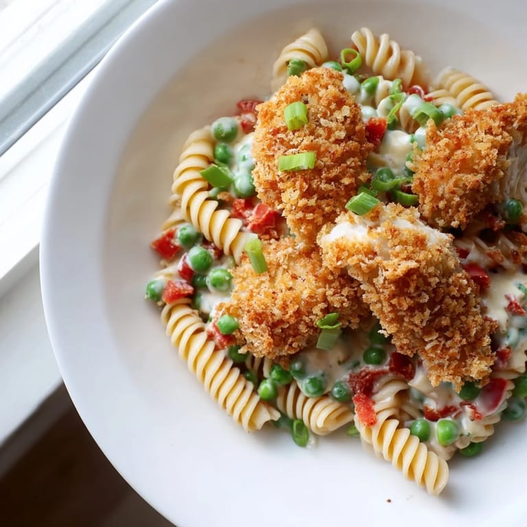Save My roommate walked into the kitchen last summer and caught me standing over the stove, frying chicken at 11 PM. "What are you doing?" she asked, watching me plate perfectly golden nuggets next to a bowl of pasta. "Making tomorrow's lunch," I said, like it was the most normal thing in the world to be deep-frying on a Tuesday night. Now she requests this pasta salad for every potluck, and I've learned to double the recipe because people hover around the serving bowl until the crispy chicken runs out.