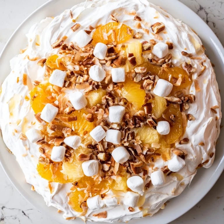 Save My aunt showed up to Thanksgiving one year with a casserole dish that didn't belong on the dessert table but absolutely demanded to be there anyway. She called it Ambrosia, though honestly, it tasted like Christmas morning mixed with sophistication, and I couldn't stop going back for thirds. Years later, I realized what made hers so memorable wasn't just the creamy sweetness—it was that subtle warmth underneath, a whisper of bourbon that made the whole thing feel grown-up and indulgent. Since then, I've played with her recipe, added toasted pecans for crunch, and that bourbon touch has become non-negotiable. Now when I make it, I'm chasing that exact feeling of luxury hiding inside something so simple.