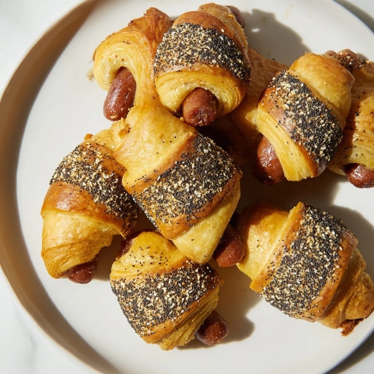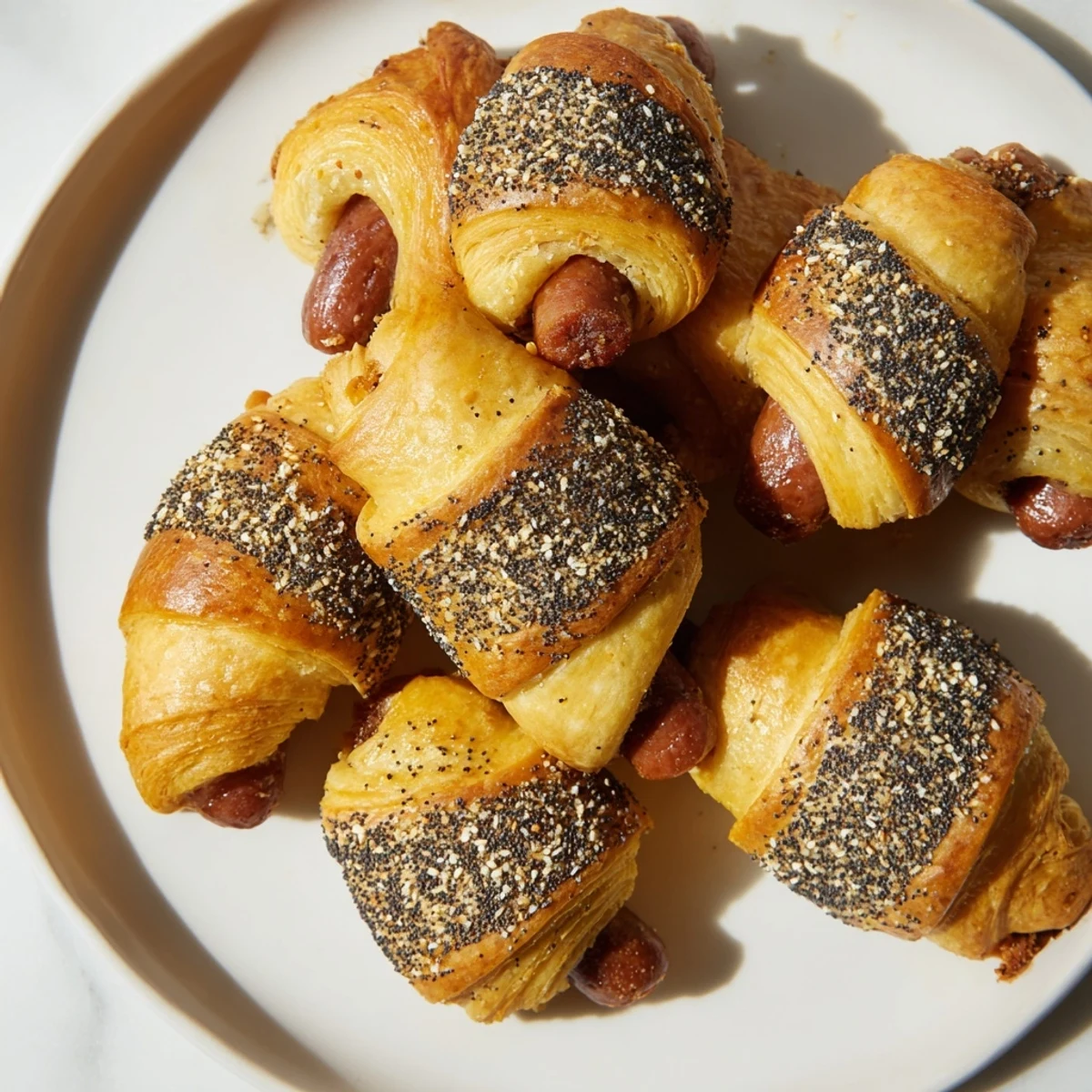 Save Juicy mini sausages wrapped in golden, flaky dough and topped with everything bagel seasoning. This crowd-pleasing appetizer uses budget-friendly sausages for a delicious twist on a classic party snack.
