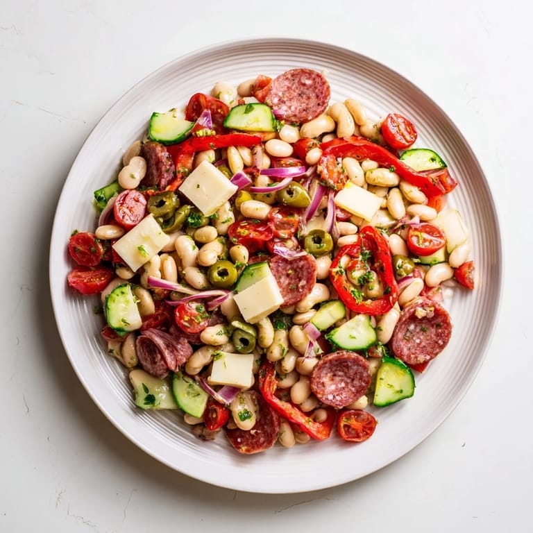 Save There's something about opening a can of beans on a lazy afternoon that makes you feel productive without actually trying. My friend Marco brought a bag of Italian meats and cheeses to my place once, and instead of the usual pasta, I threw together this salad in fifteen minutes. He was skeptical until the first bite—suddenly everyone was reaching for seconds, and I realized I'd stumbled onto something genuinely special that required almost no cooking.