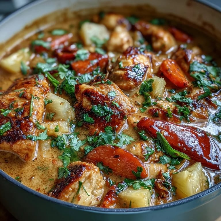 Save With its vibrant colors, intoxicating aromas, and perfectly balanced flavors, this One-Pot Chicken Pineapple Coconut Curry proves that extraordinary meals don't require complicated techniques or hours in the kitchen. It's the kind of dish that makes weeknight cooking feel special, bringing together tender chicken, tropical fruit, and aromatic spices in one glorious pot. Whether you're new to curry-making or a seasoned cook, this recipe delivers consistent, crowd-pleasing results every single time.