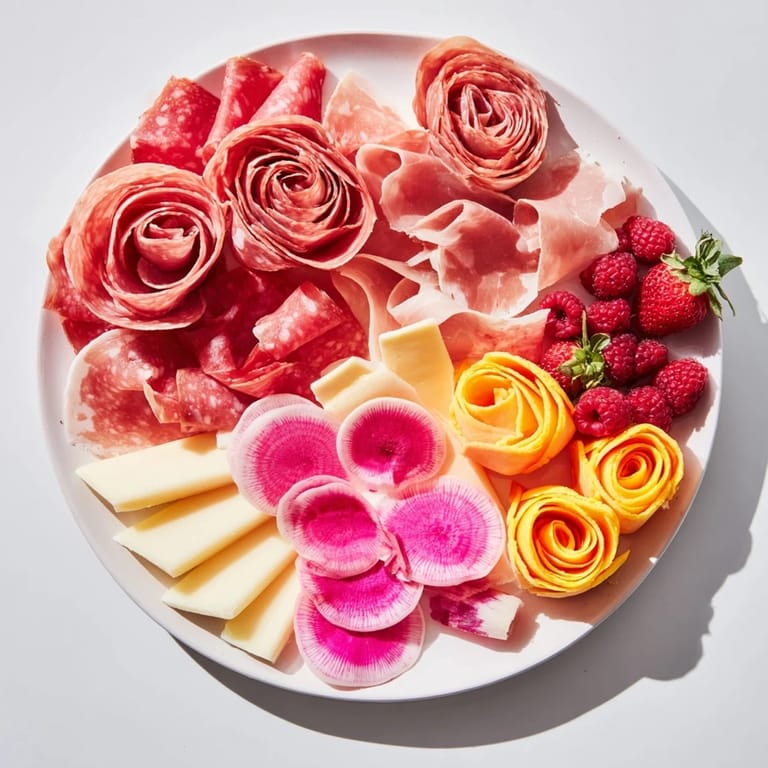 Save I discovered this platter while arranging ingredients for a spring brunch, and something magical happened when I started layering the pinks and reds together. The soft hues of prosciutto roses, pale radishes, and blushing cheeses created this dreamlike watercolor effect that made me pause. My guests didn't just eat it—they photographed it, admired it, and kept saying how it felt too beautiful to touch. That's when I realized this wasn't just an appetizer; it was edible art that brought people together through both visual wonder and genuine flavor.