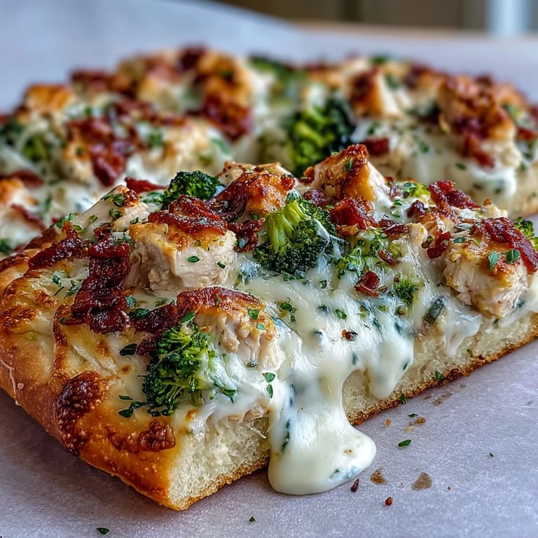 Save There's something about the smell of garlic hitting hot butter that makes you pause mid-conversation in the kitchen. That's the moment I first understood why this pizza works so well—it's not just another chicken and vegetable combo, it's the kind of thing that happens when you realize white sauce belongs on pizza just as much as red does. My neighbor brought over leftover roasted broccoli one evening, and instead of the usual stir-fry fate, I spread it on dough with a creamy garlic sauce I'd thrown together. The result was so good that it became the pizza I make when I actually want people to be impressed without breaking a sweat.